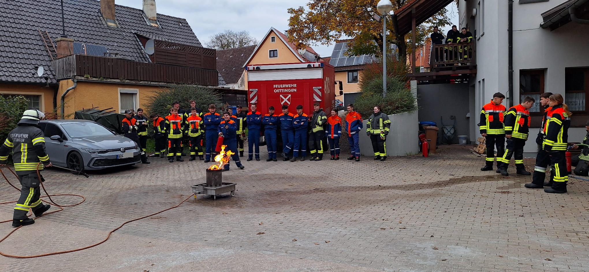 In Oettingen legten 43 Teilnehmer die Zwischenprüfung der Feuerwehr-Grundausbildung ab. Nach einer anspruchsvollen theoretischen wie praktischen Prüfung konnten alle Teilnehmenden ihr erfolgreiches Bestehen feiern.