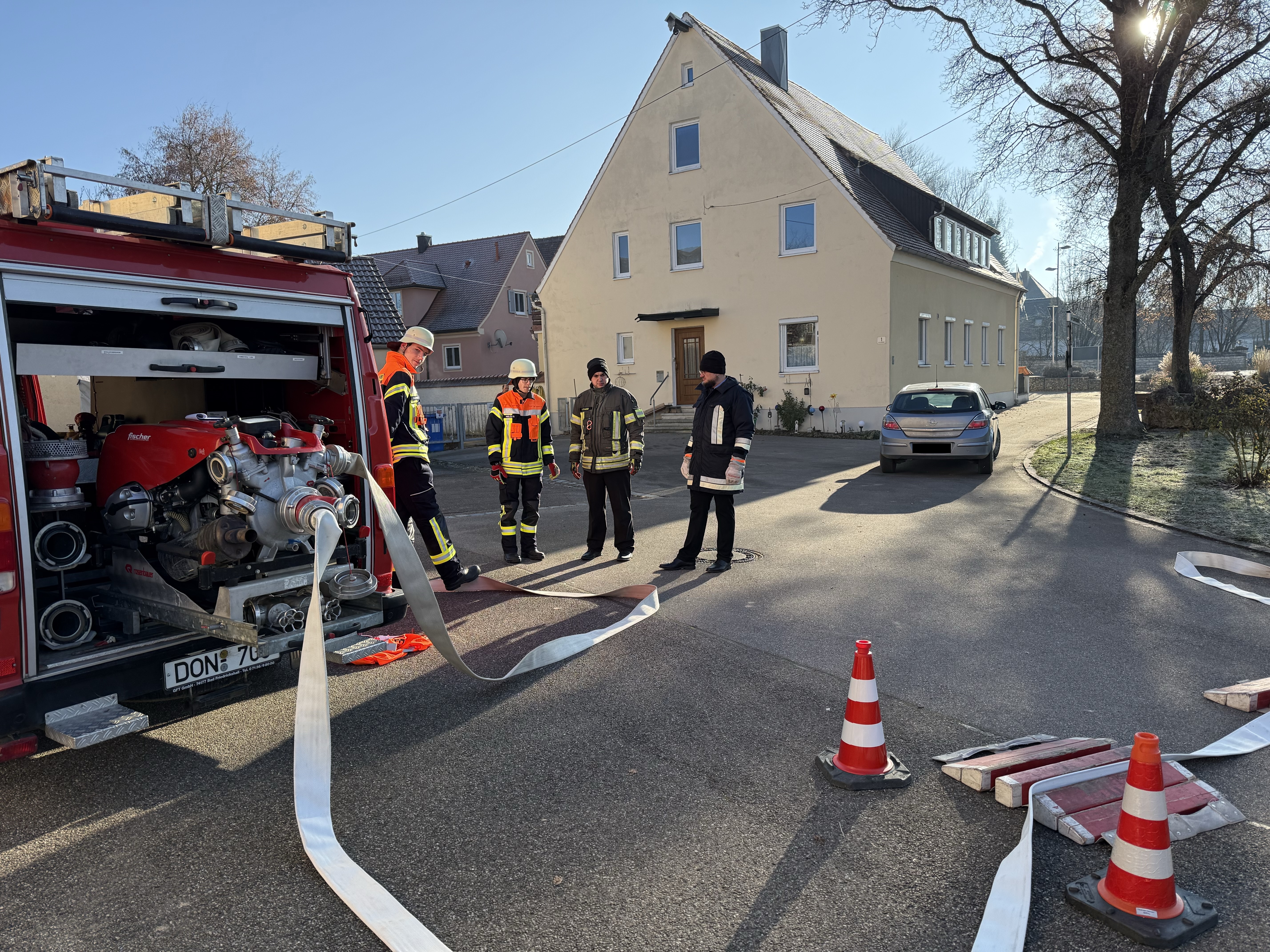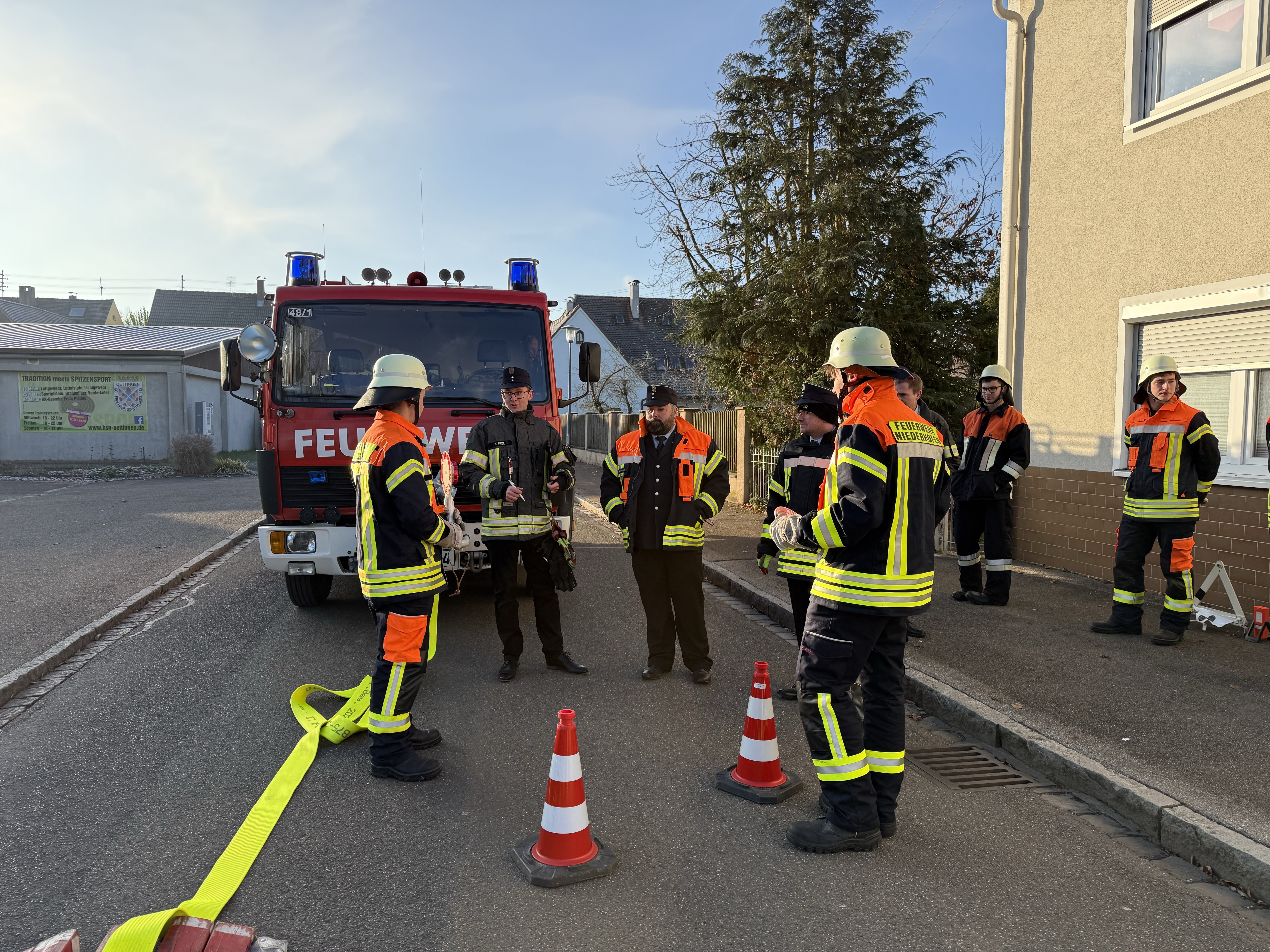 Der Prüfungstag am Samstag, den 22.11.2025, startete mit einer umfassenden Theorieprüfung. Anschließend folgten drei praktische Stationen, bei denen die Teilnehmenden ihr Wissen und Können in den Bereichen Lösch- und Hilfeleistungseinsatz sowie im Umgang mit Funk unter Beweis stellten. Gegen 12 Uhr waren alle Prüfungen abgeschlossen. In seiner Ansprache gratulierte Inspektionsausbilder und Kreisbrandmeister Klaus Schwager allen Absolventen zur bestandenen Prüfung. Darüber hinaus würdigte er das Engagement der Ausbilder und Prüfer sowie insbesondere den großen Zeitaufwand der Lehrgangsteilnehmenden.