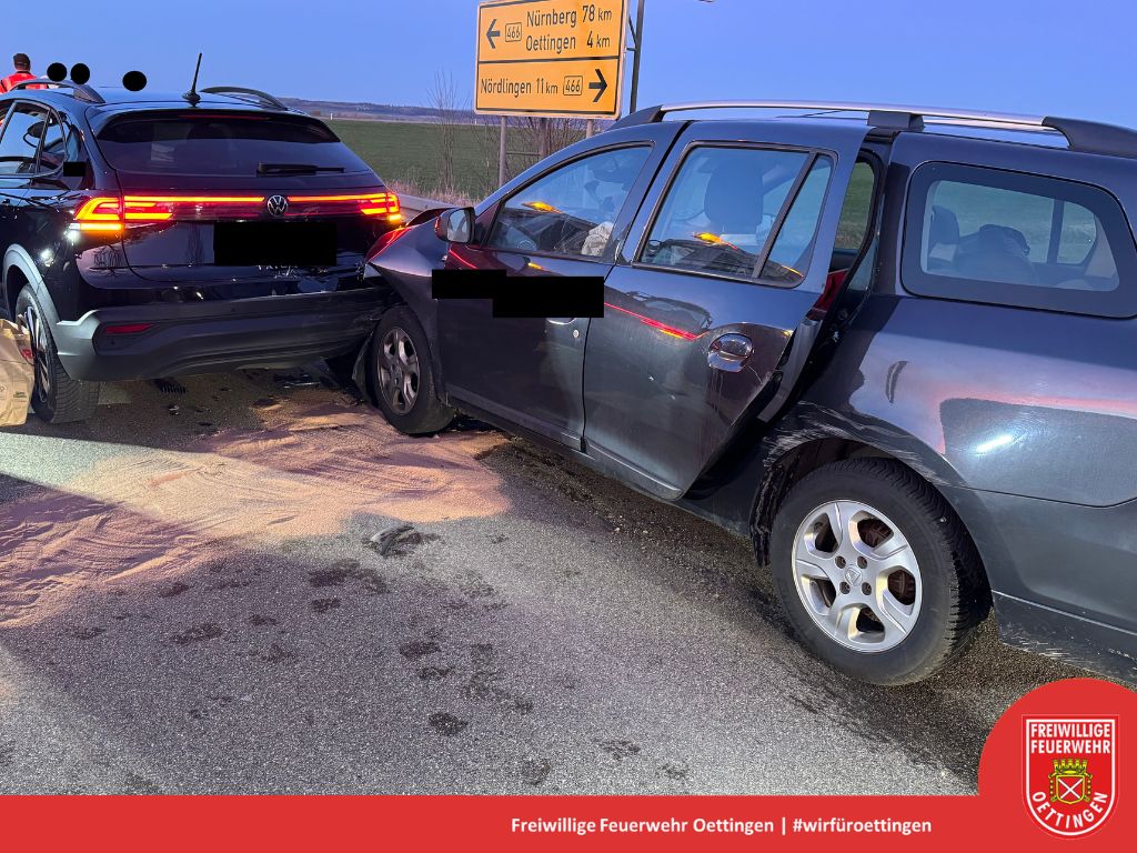 Ein Auffahrunfall, bei dem zunächst Schlimmeres befürchtet wurde, hat sich am Mittwochabend gegen 19.30 Uhr auf der B466 ereignet. Wie die Polizei mitteilt, erkannte ein 65-jähriger Autofahrer zu spät, dass der vor ihm fahrende 21-Jährige seinen Wagen verkehrsbedingt abbremsen musste und fuhr auf diesen auf. Durch den Aufprall löste der Airbag im Wagen des 65-Jährigen aus. Ersthelfer gingen zunächst davon aus, dass der Mann im Auto eingeklemmt war, sodass ein Notarzt und ein Rettungshubschrauber an die Unfallstelle beordert wurden. Glücklicherweise blieben aber beide Unfallbeteiligten unverletzt. Allerdings mussten beide Fahrzeuge abgeschleppt werden. Es entstand ein Sachschaden im unteren fünfstelligen Bereich.